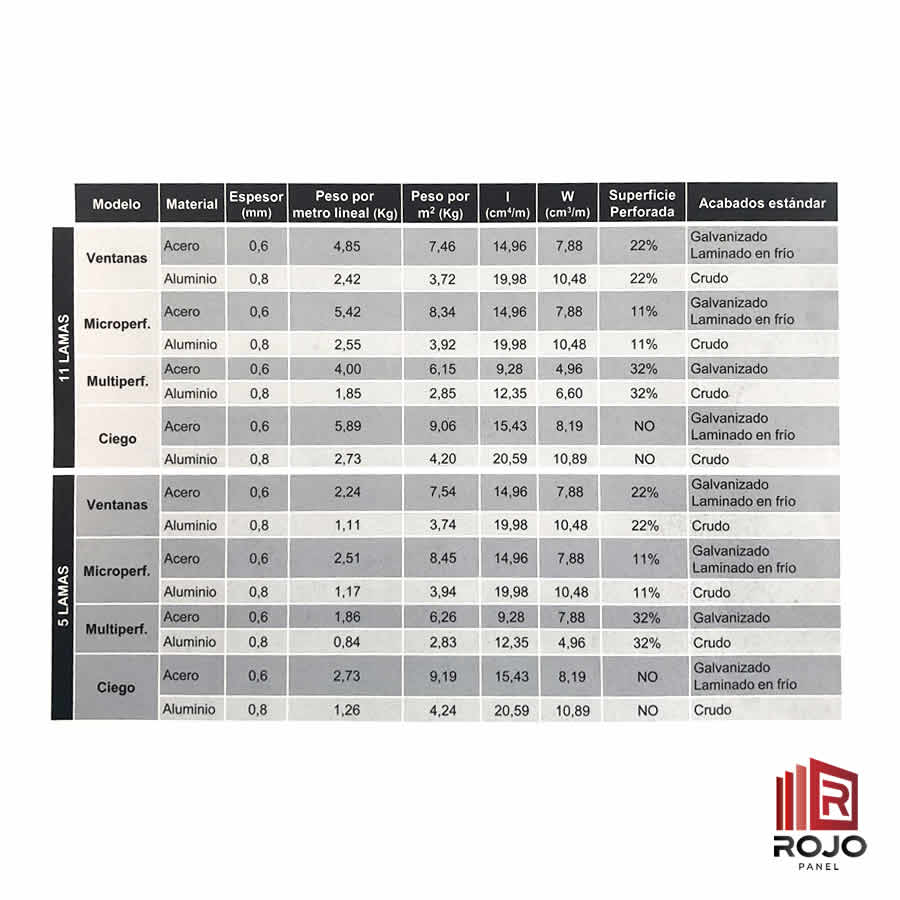 Panel Aluacero® 11 Lamas multiperforado