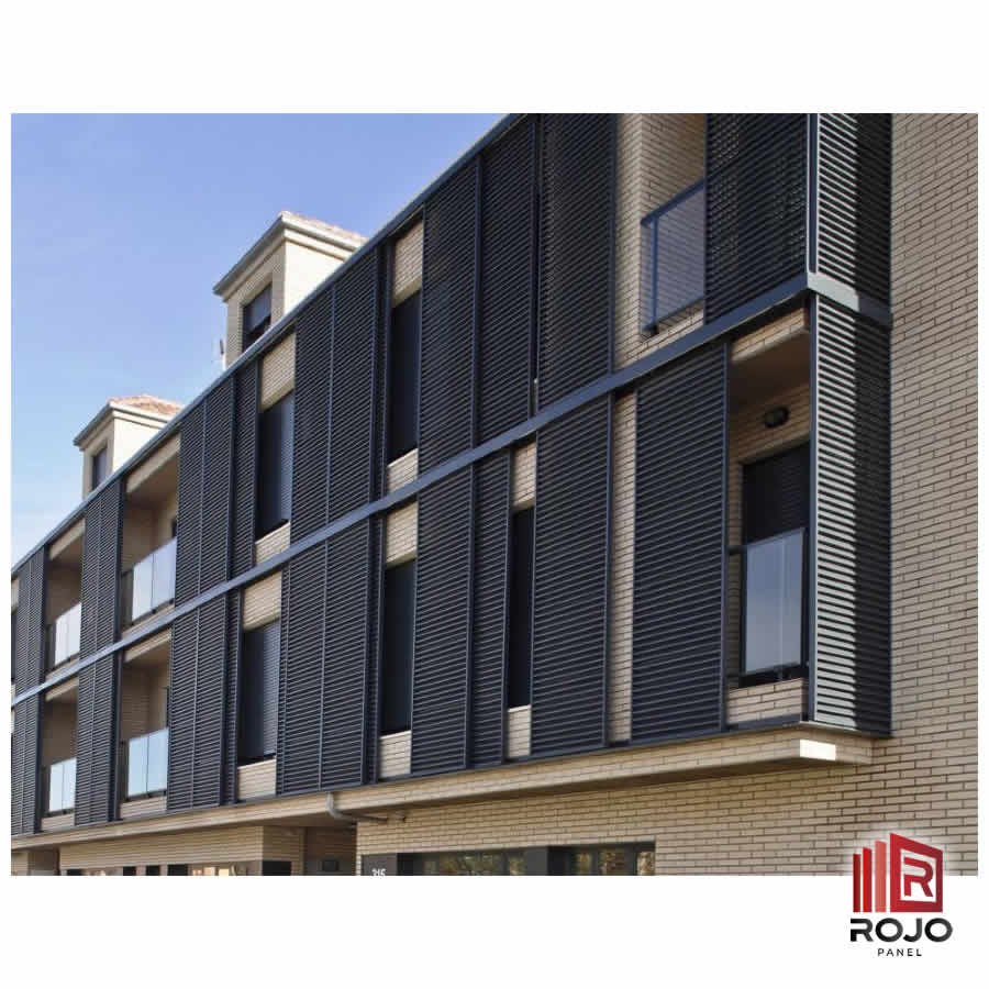 Los Paneles Aluacero Mallorquina Están especialmente diseñados para fabricar revestimientos de fachadas, pantallas acústicas, cerramientos, portones, rejillas de ventilación, marquesinas, cubriciones de terrazas, parasoles, etc. Para su instalación disponen de marcaciones con solapa para rematar en obra, o sin solapa para encastrar directamente en la pared.