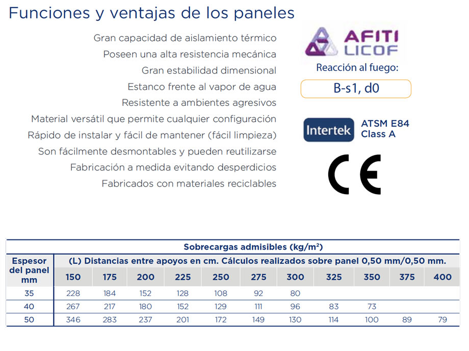 Ofrecemos diferentes configuraciones en función del proyecto al que van destinados, pudiendo elegir entre tres espesores distintos, tres nervados exteriores y dos nervados interiores diferentes, así como una amplia gama de colores disponibles. Por otra parte, también ofrecemos la posibilidad de fabricar paneles con espuma PIR (poliisocianurato) autoextinguible con certificación B-s1, d0 según Euroclases (UNE-EN 13501).